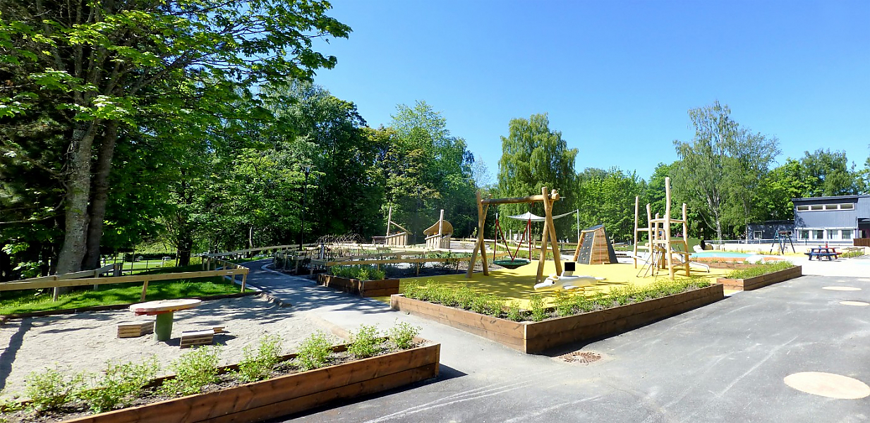 - Aktive soner: Tilrettelagt for fysisk utfoldelse med f.eks. klatrestativ, balanseelementer, husker, ballområder